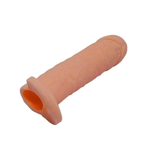 Capa peniana extensora produzida em cyberskin, um material macio, flexível e de alta qualidade que imita com perfeição a pele humana.