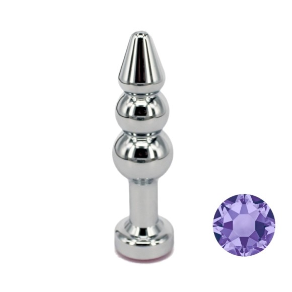 Plug anal de aço inoxidável com formato escalonado com joia na base.