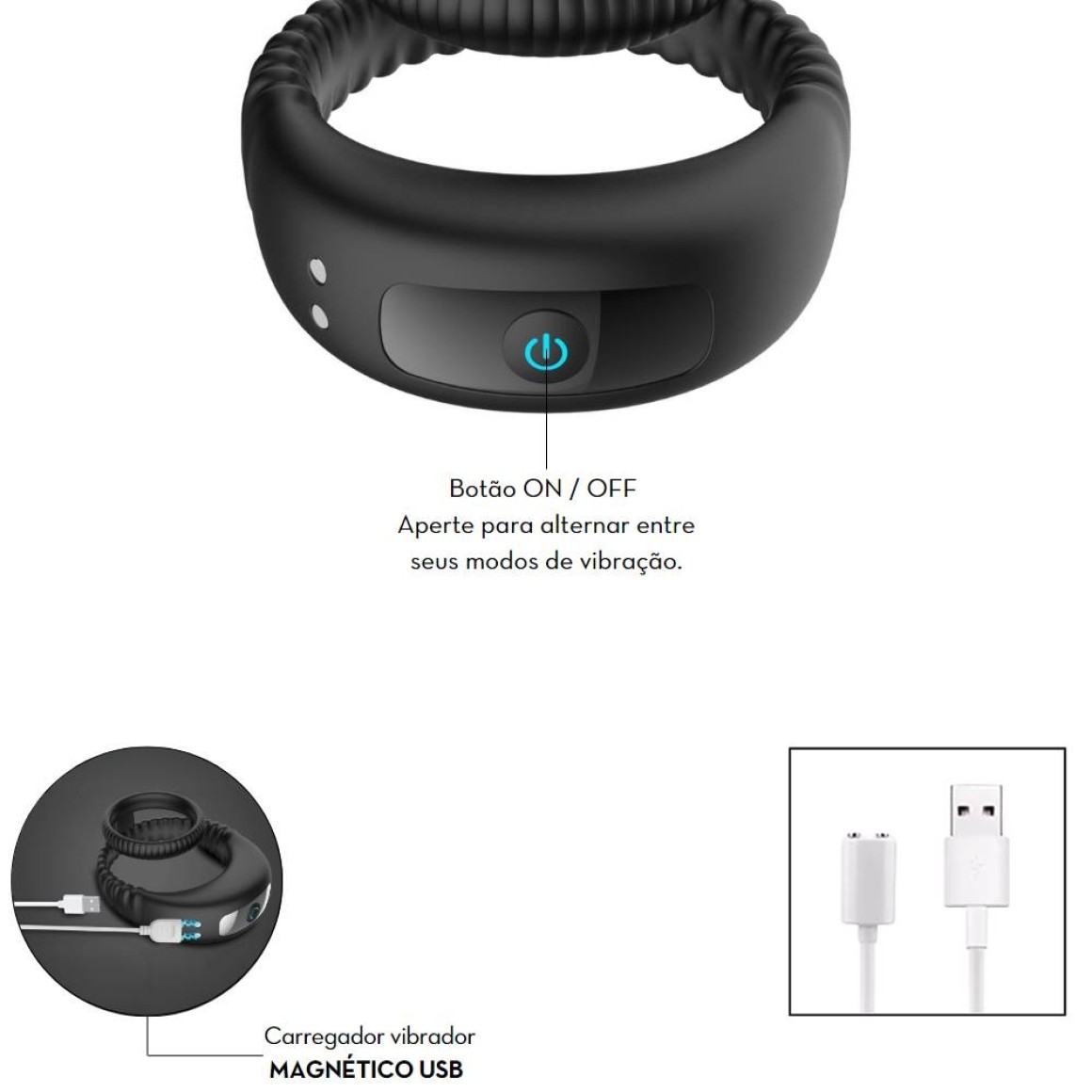 Bateria: Recarregável USB (cabo magnético incluso)