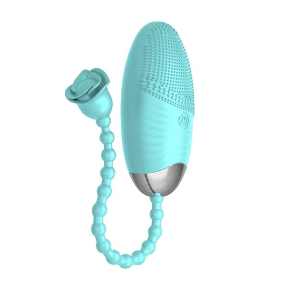 Cápsula vibratória com cerdas estimuladoras e cordão com design de flor na ponta. Possui detalhe metalizado, toque aveludado e controle remoto sem fio