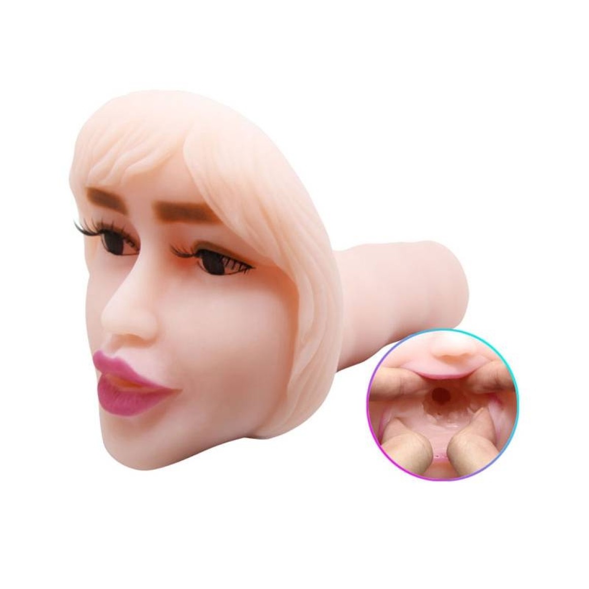 Masturbador rosto realístico feminino com túnel de penetração texturizado. Acompanha bullet vibratório.