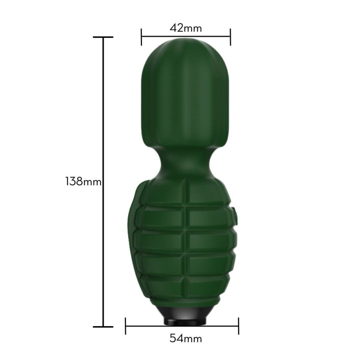 Mini massageador / estimulador varinha mágica em formato de granada. Possui toque suave, aveludado e a sua ponta é flexível podendo girar até em 360°.