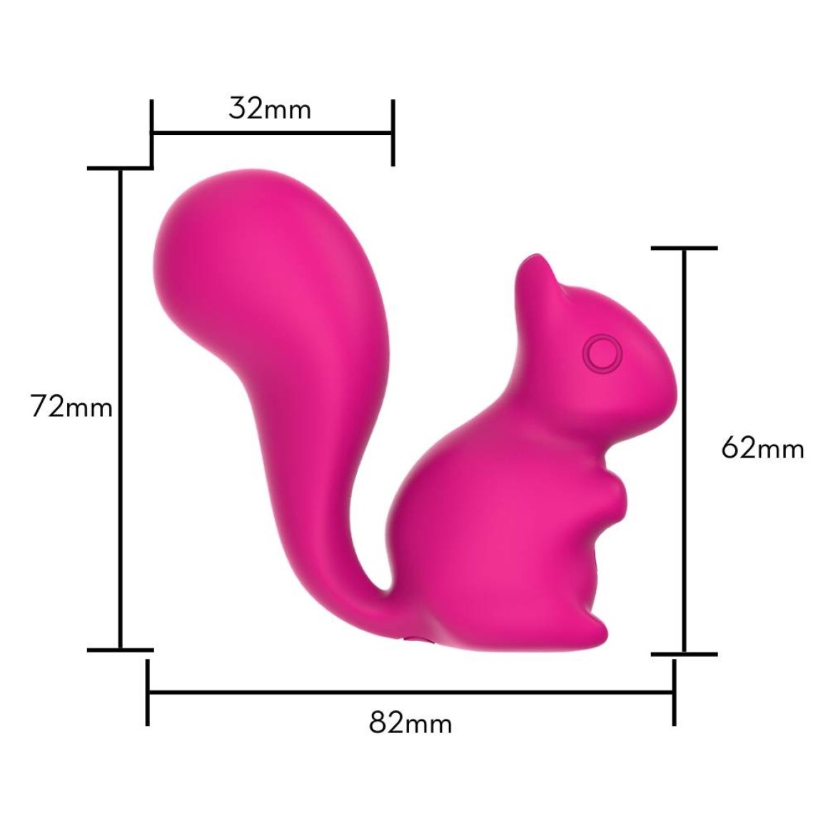Mini vibrador revestido em silicone líquido e em formato de esquilo. Possui toque suave e aveludado.
