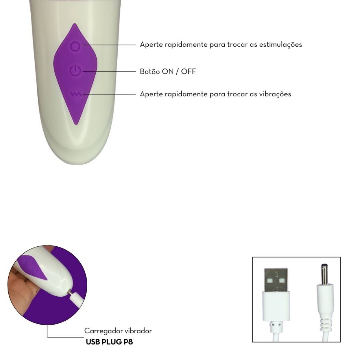 Desempenho: 3 modos de vai e vem + 10 modos de vibração + 7 modos de estimulação