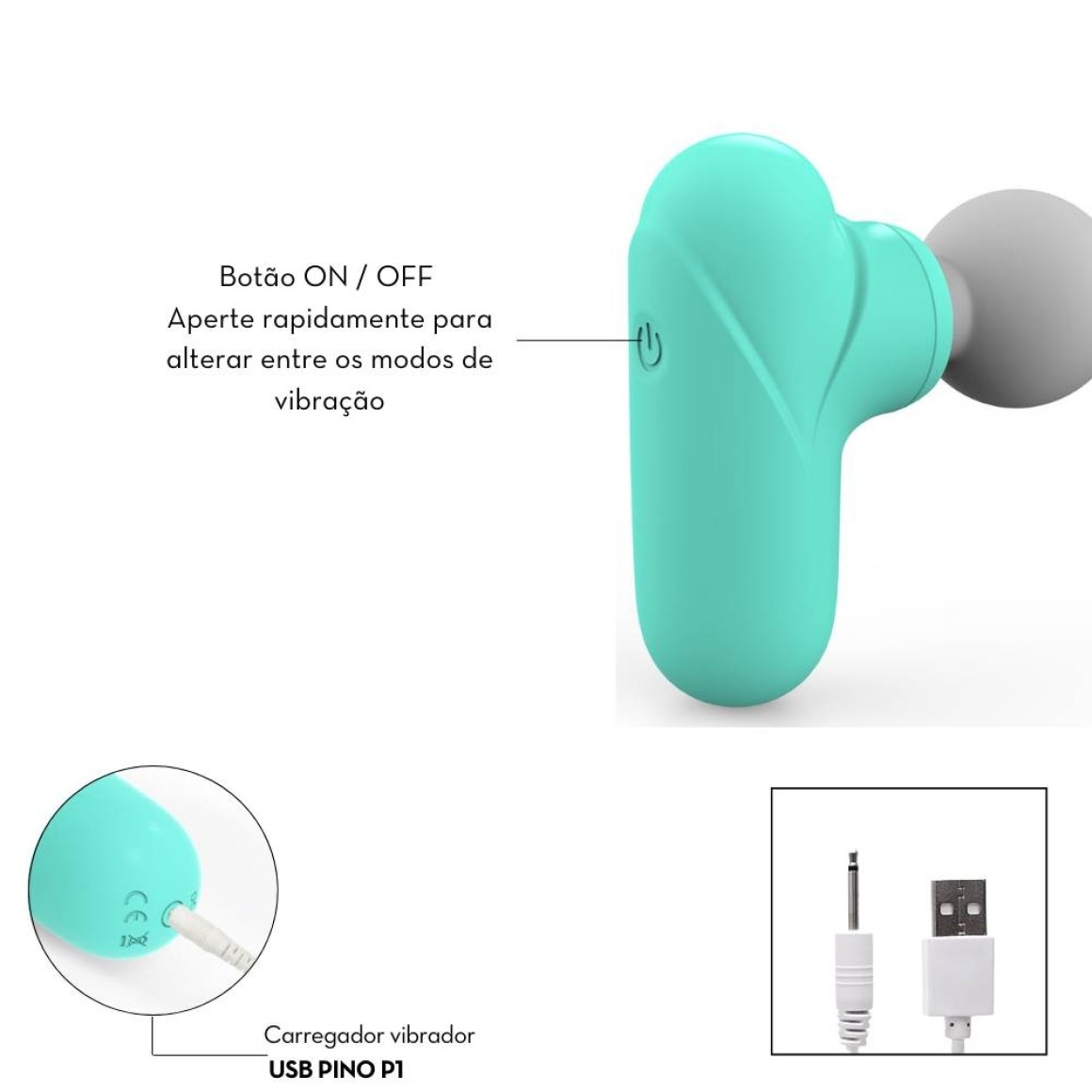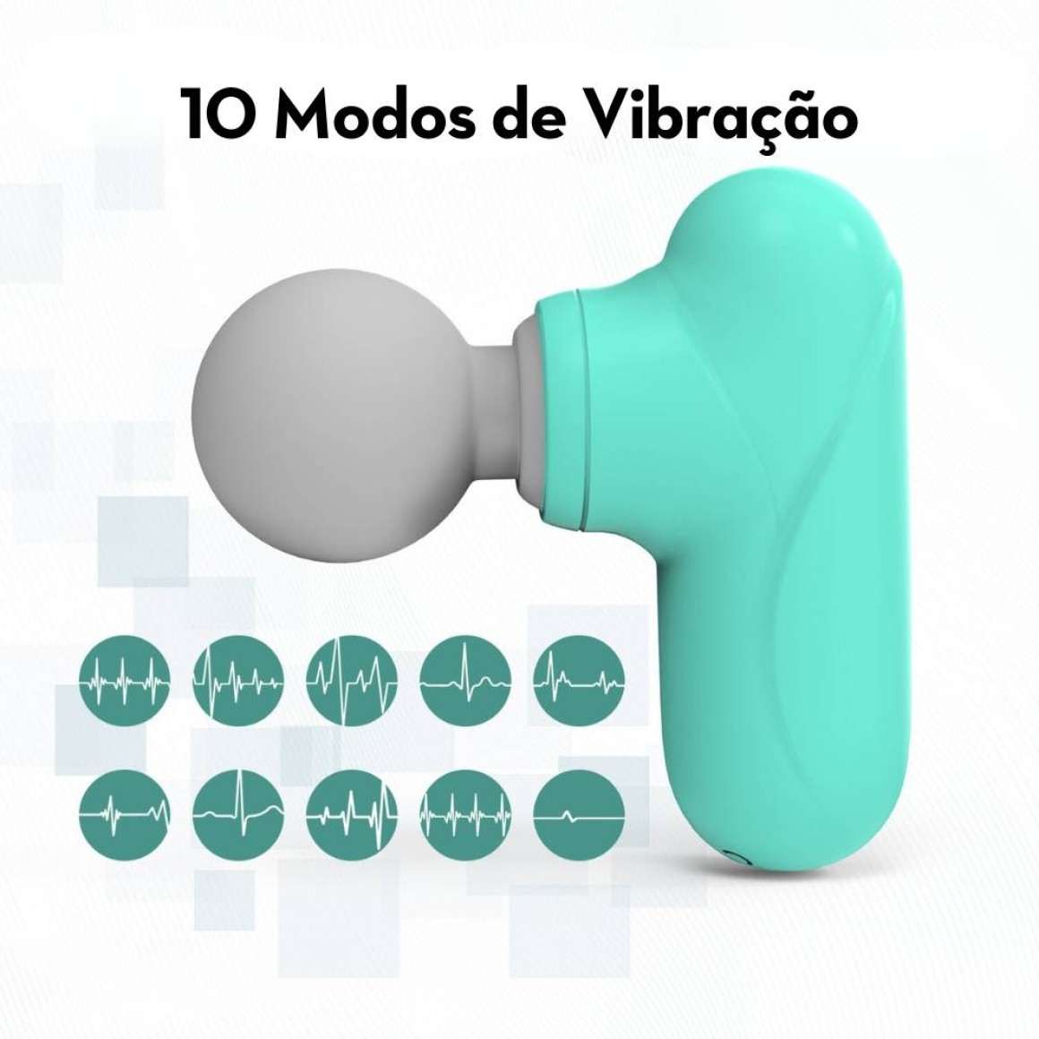 Mini massageador em formato de pistola revestido em silicone com toque aveludado.