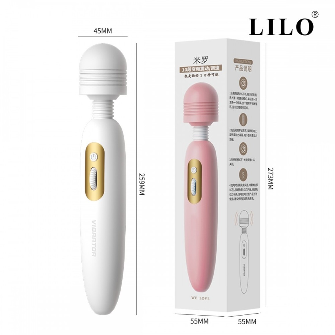 Vibrador Varinha Mágica recarregável com 10 modos de vibração e mutivelocidade - LILO.