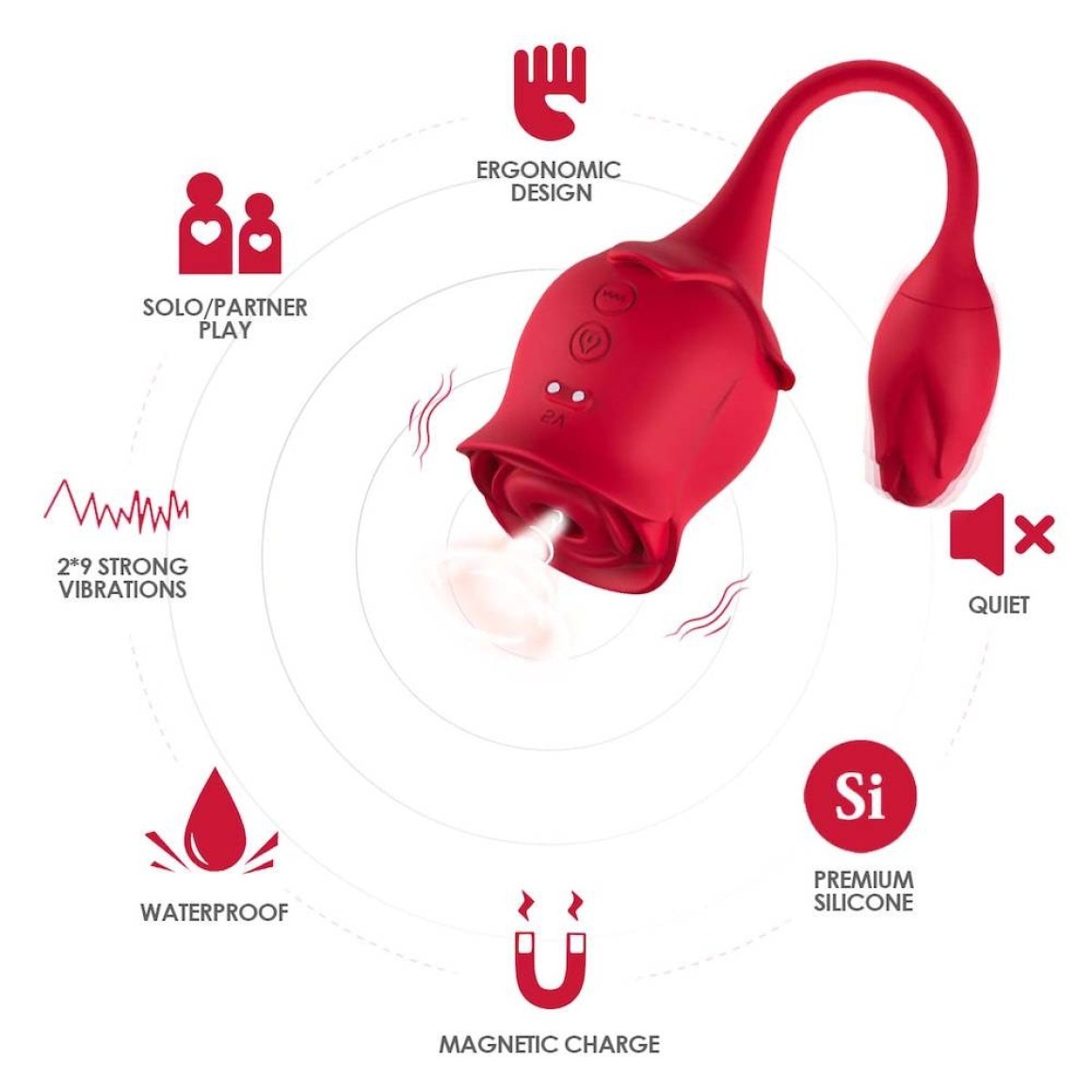 Assim como o nome já diz tem um formato na flor rosa com cabo, ideal para o Ponto G e estimular novas áreas excitantes.Com 9 modos de vibração e 10 modos de Pulsação , (para frente e para trás).Produto Recarregável, acompanha cabo USB.Medidas aproximadas:27x6,1 cm.Penetráveis:18 cm.Peso:170 g. Material: Silicone + ABS.