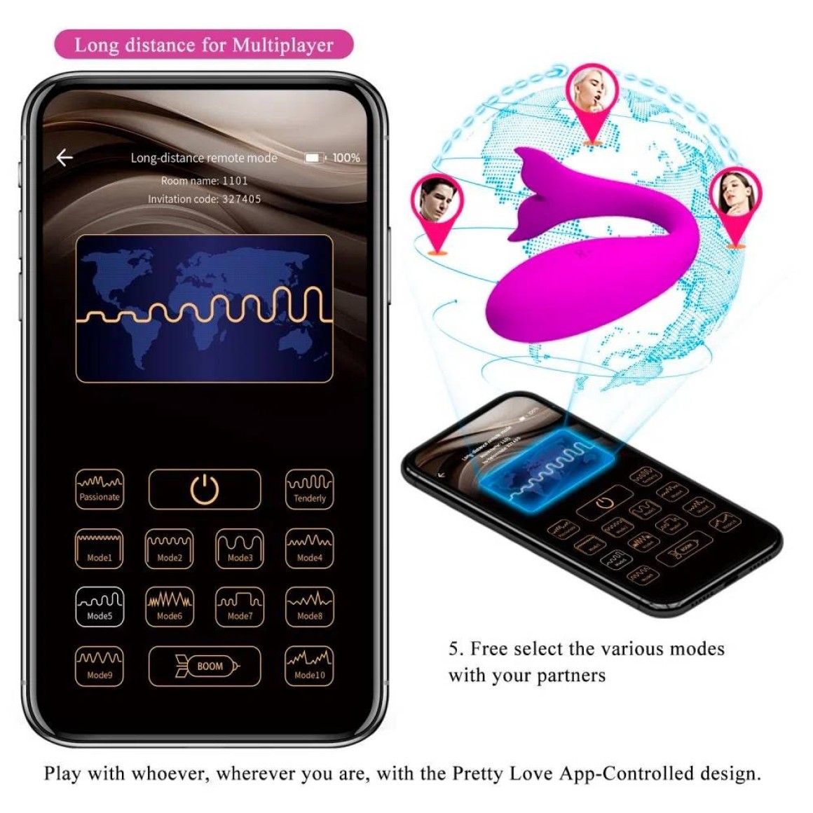 Vibrador recarregável para casais com controle via aplicativo de qualquer parte do mundo. Possui 12 modos de vibração.