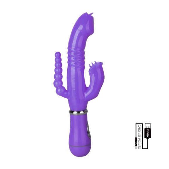Vibrador de Ponto G e Clitóris recarregável com 12 modos de vibração - 3 em 1 - YOUVIBE. Vibrador de ponto G e clitóris com Plug anal.Utiliza vibração como forma de estímulo, fazendo você sentir novas sensações.Possui 12 modos de vibração.Seu toque é aveludado e macio, proporcionando assim a mulher muita mais conforto na hora da penetração.Sua leve curvatura é perfeita para a descoberta de prazeres ainda desconhecidos.Peso:141 g.Medidas aproximadas:23x3 cm.Penetráveis:11,5 cm.Material:TPR+ABS.Produto recarregável, acompanha cabo USB.