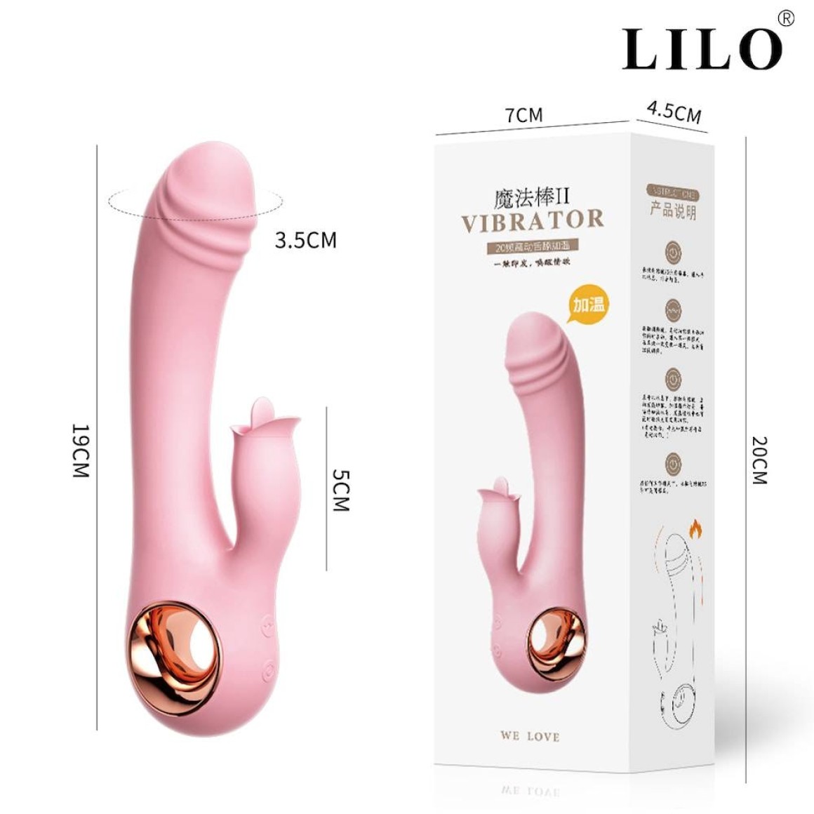 Possui estimulador de clítoris, no estilo de língua, com 10 modos de vibração e função de aquecimento.