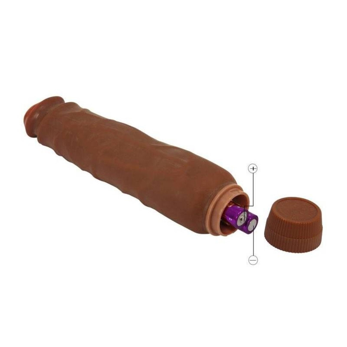 Pênis realístico 26 cm com vibração multivelocidade, possui veias salientes e glande pequena.