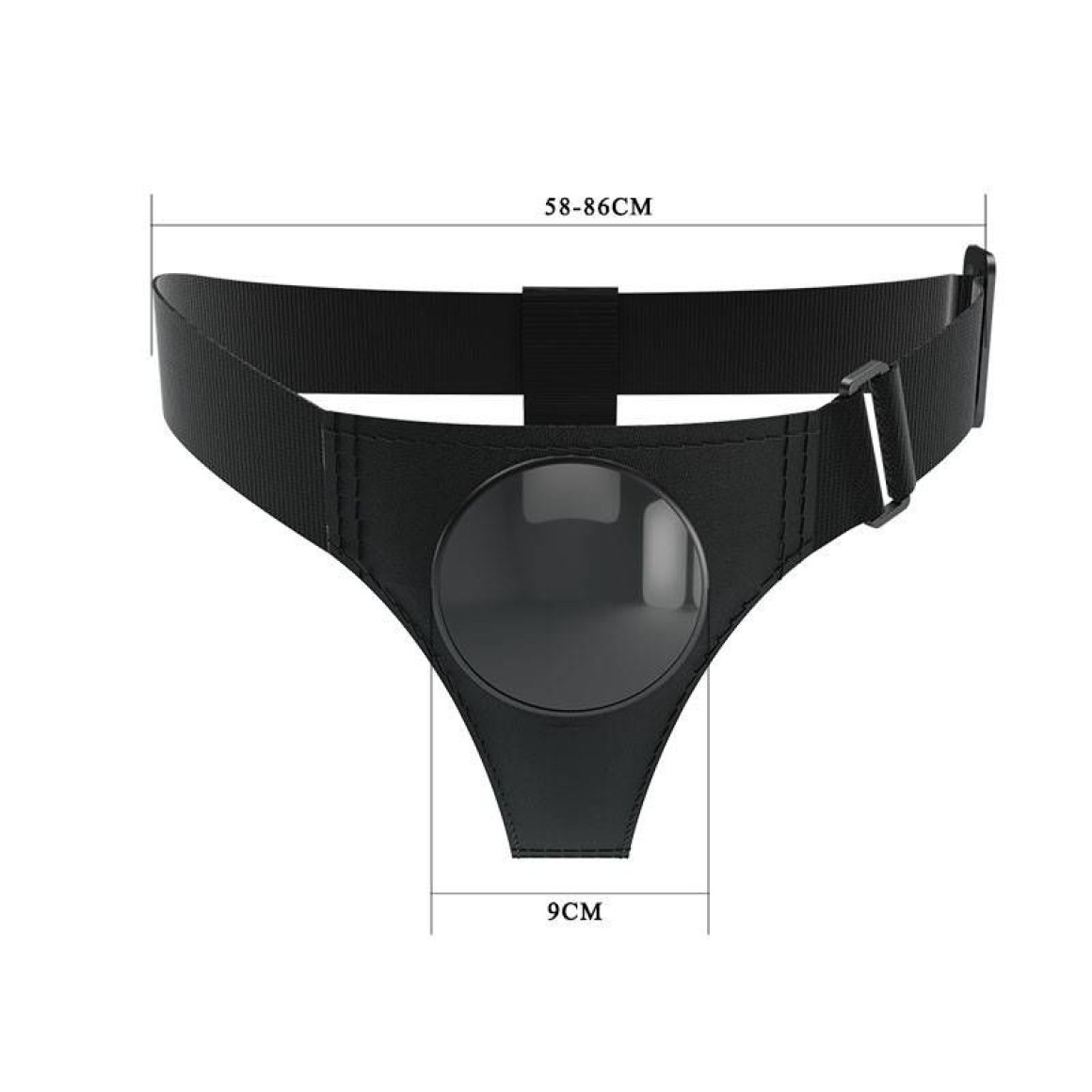 Cinta peniana com base para utilizar penetradores que possuam ventosa em sua base com até 9 cm de diâmetro.