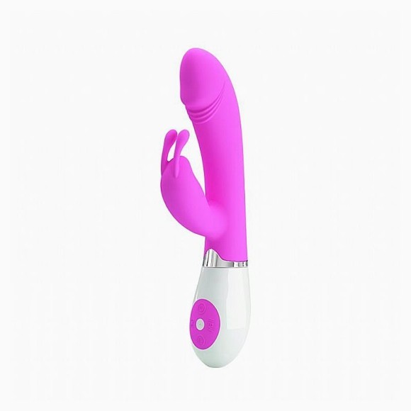 Gene é um massageador com estimulador de clítoris em formato de coelho, fabricado em silicone macio.