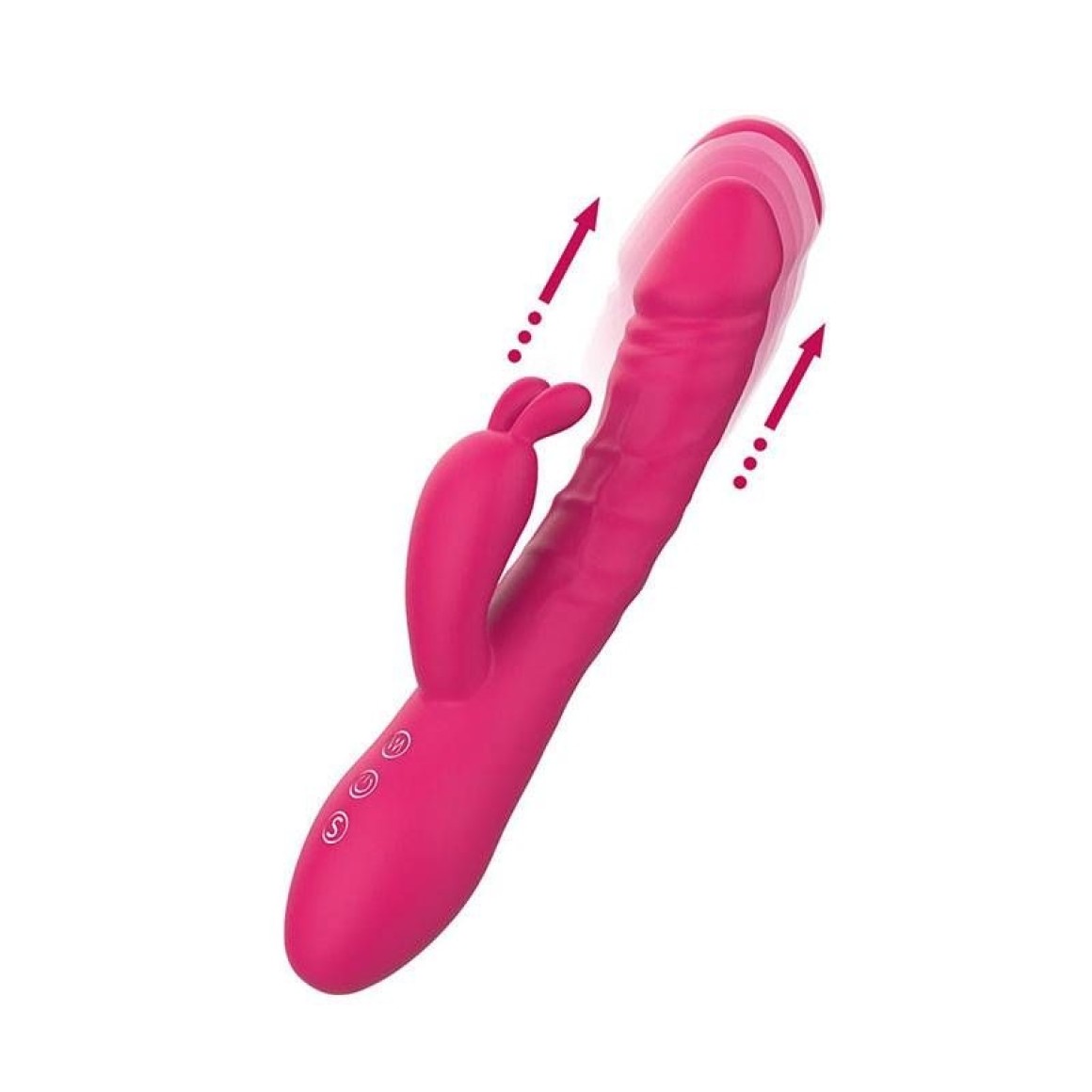 Vibrador recarregável com estimulador clitoriano formato coelho.