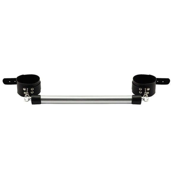 Separador de pernas com base em alumínio de 50cm com algemas em couro sintético em sistema de fivelas.