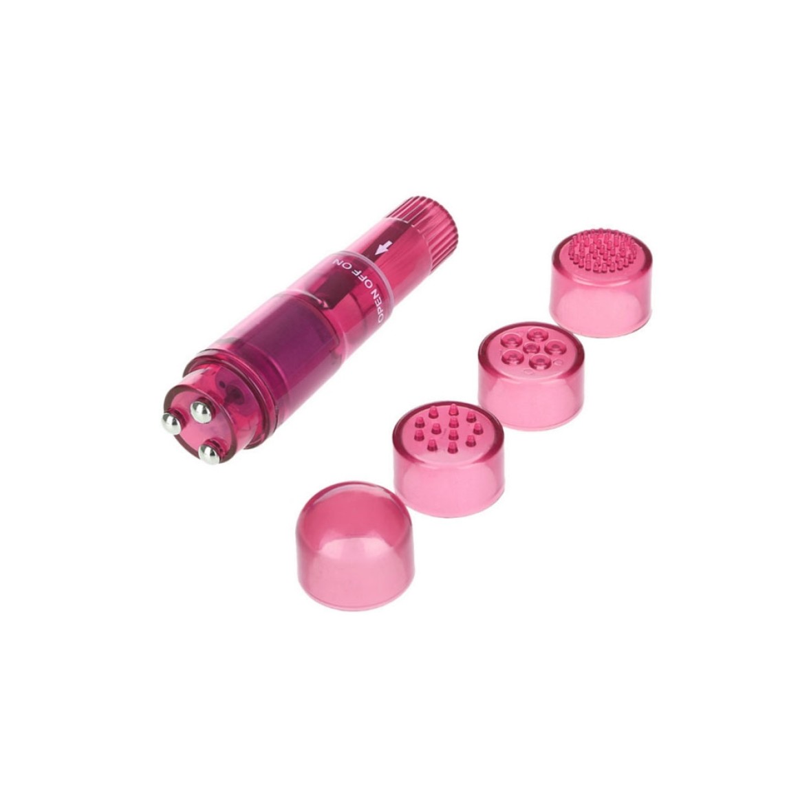 Mini vibrador para clitóris com 4 cabeças intercambiáveis para diferentes estímulos.