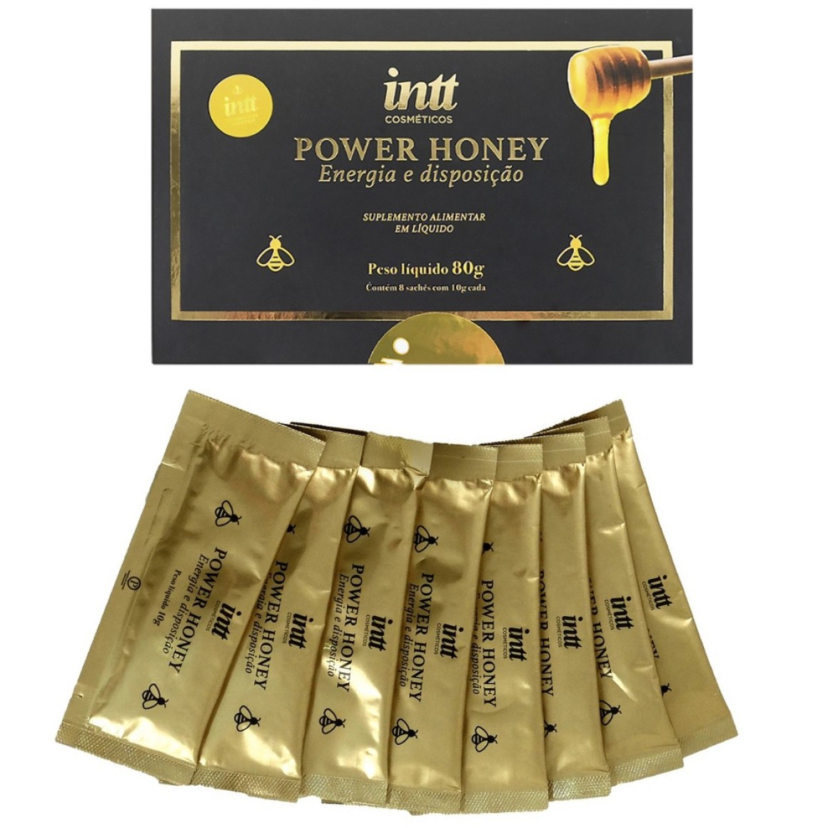 O power honey da Intt Cosméticos é um suplemento alimentar líquido a base de mel em pó, taurina, cafeína, ômega 3, gengibre, canela, beterraba, guaraná e melancia.