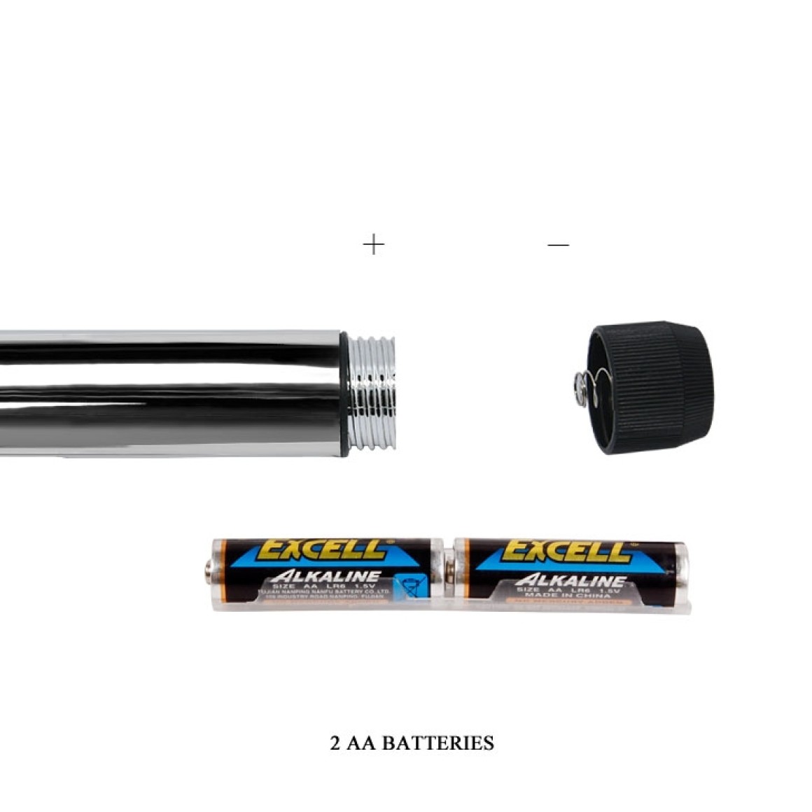 Personal: 17×2,5×2,5 cm Diâmetro: 2,5 cm Penetráveis: 15 cm Bullet: 5,5×2,5 cm Utiliza: 2 pilhas AA não inclusa Material: ABS